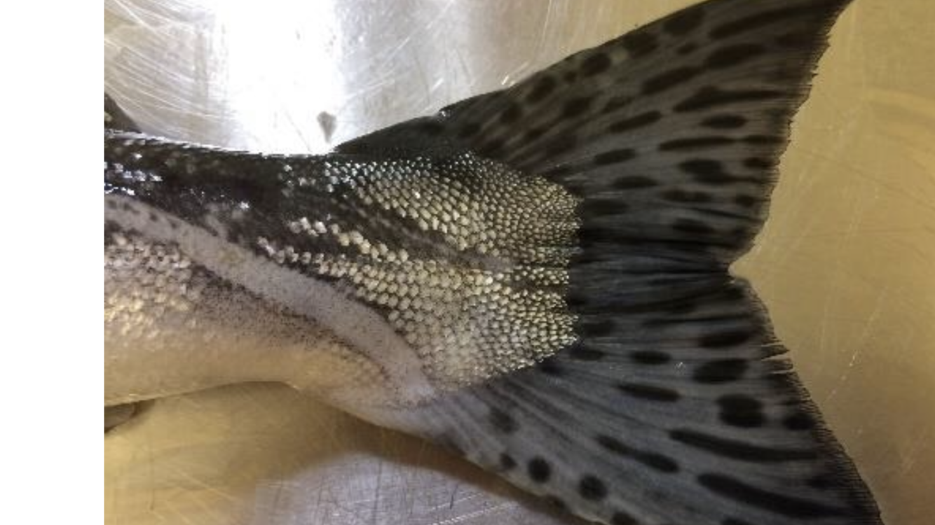 Pink salmon Note shape of tail, spots on tail and dark mouth. Images courtesy of Helmsdale DSFB & River Dee Trust